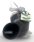 Small Black Cleansing Sponge (10cm diameter) packed in a silver organza bag.